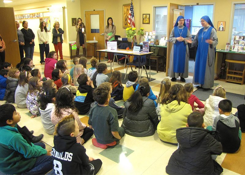 In February, the Sisters of the Servants of the Lord and two members of Our Lady of Matara Congregation spoke to religious education students at St. Jude the Apostle Parish in Lewes, Delaware, about their experiences as nuns. (Courtesy of St. Jude the Apostle Parish/OSV News)