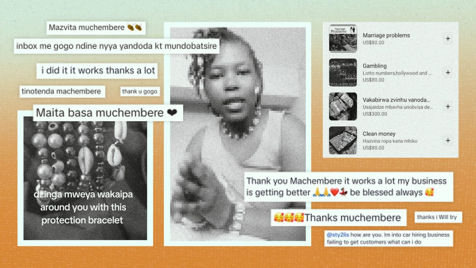 Leslie Chihela, a 29-year-old hairdresser from Harare, started consulting sangomas on TikTok in 2020. She lost her livelihood during the pandemic lockdown and was unable to visit her regular prophet. She now follows a network of sangomas on TikTok and believes their counselling can help her overcome her financial difficulties.